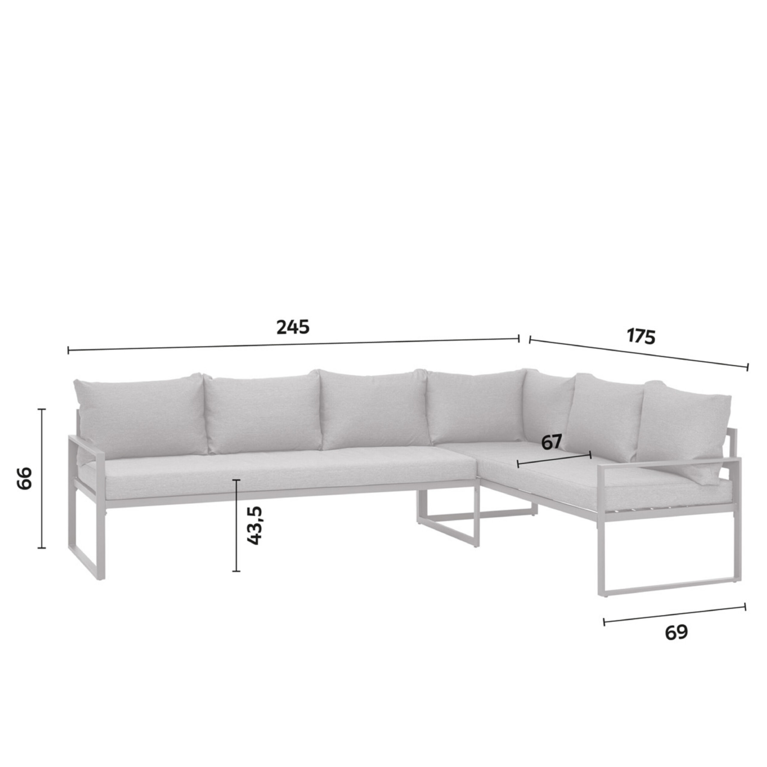 Diivani mõõdud: 66 × 172 × 245 × 67 cm
