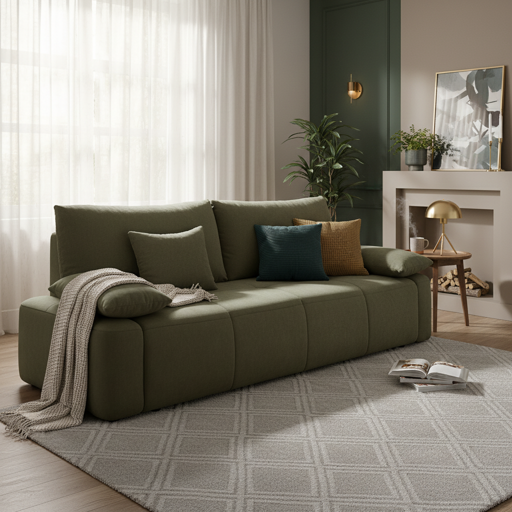 • Mugav seljatugi ja dekoratiivpadjad pakuvad lisapehmust ning loovad kutsuva ja harmoonilise välimuse.