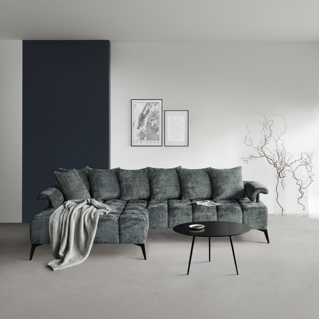 Nurgadiivan Nessa on ideaalne valik, kui otsid luksuslikku mugavust ja ajatut stiili. Selle pehme chenille-kangas, sügavad istmepadjad ja hoolikalt viimistletud detailid loovad elutuppa hubasuse ja modernse ilme.