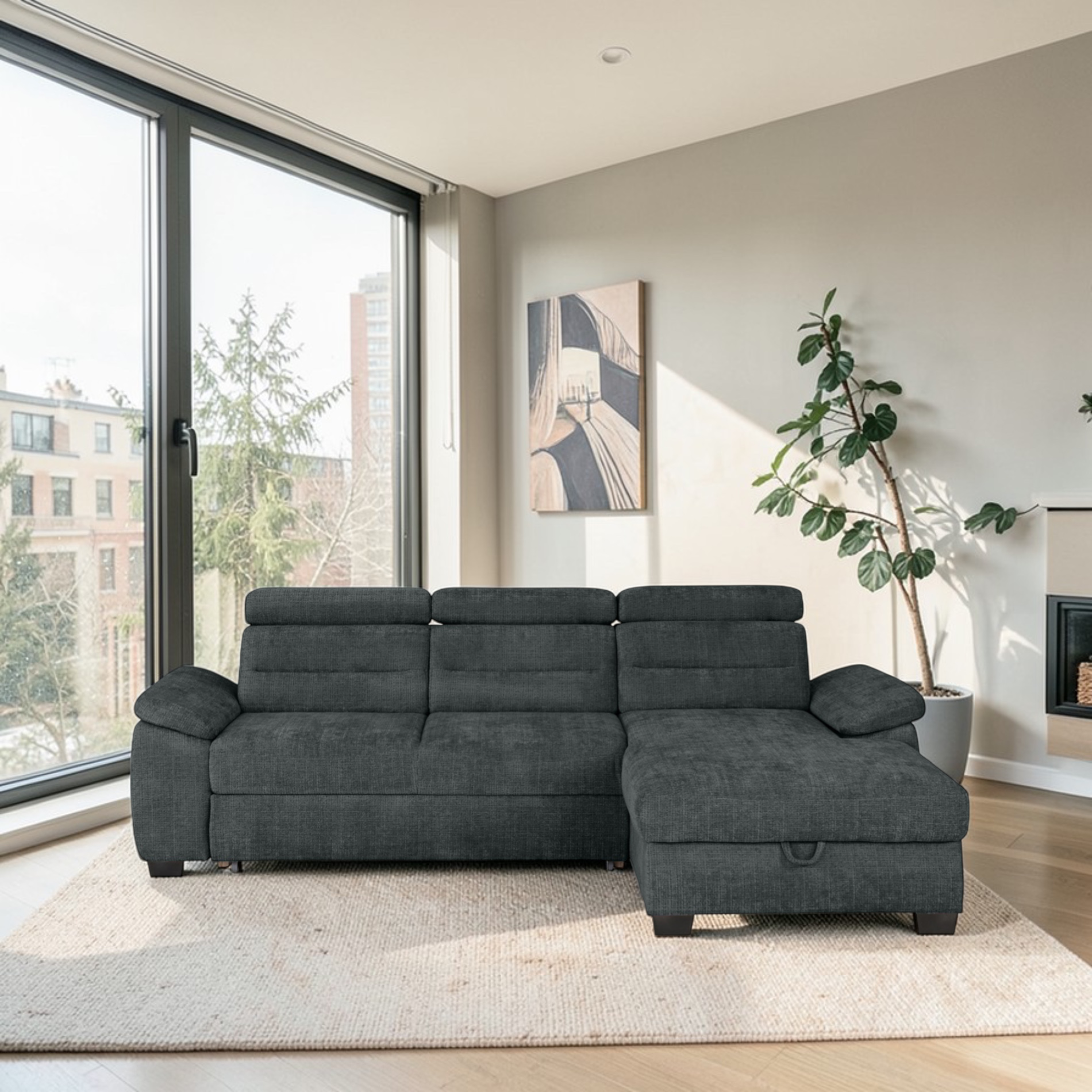 • Elegantne ja praktiline nurgadiivanvoodi Aguda toob teie koju mugavuse, funktsionaalsuse ja kaasaegse disaini täiusliku koosluse.