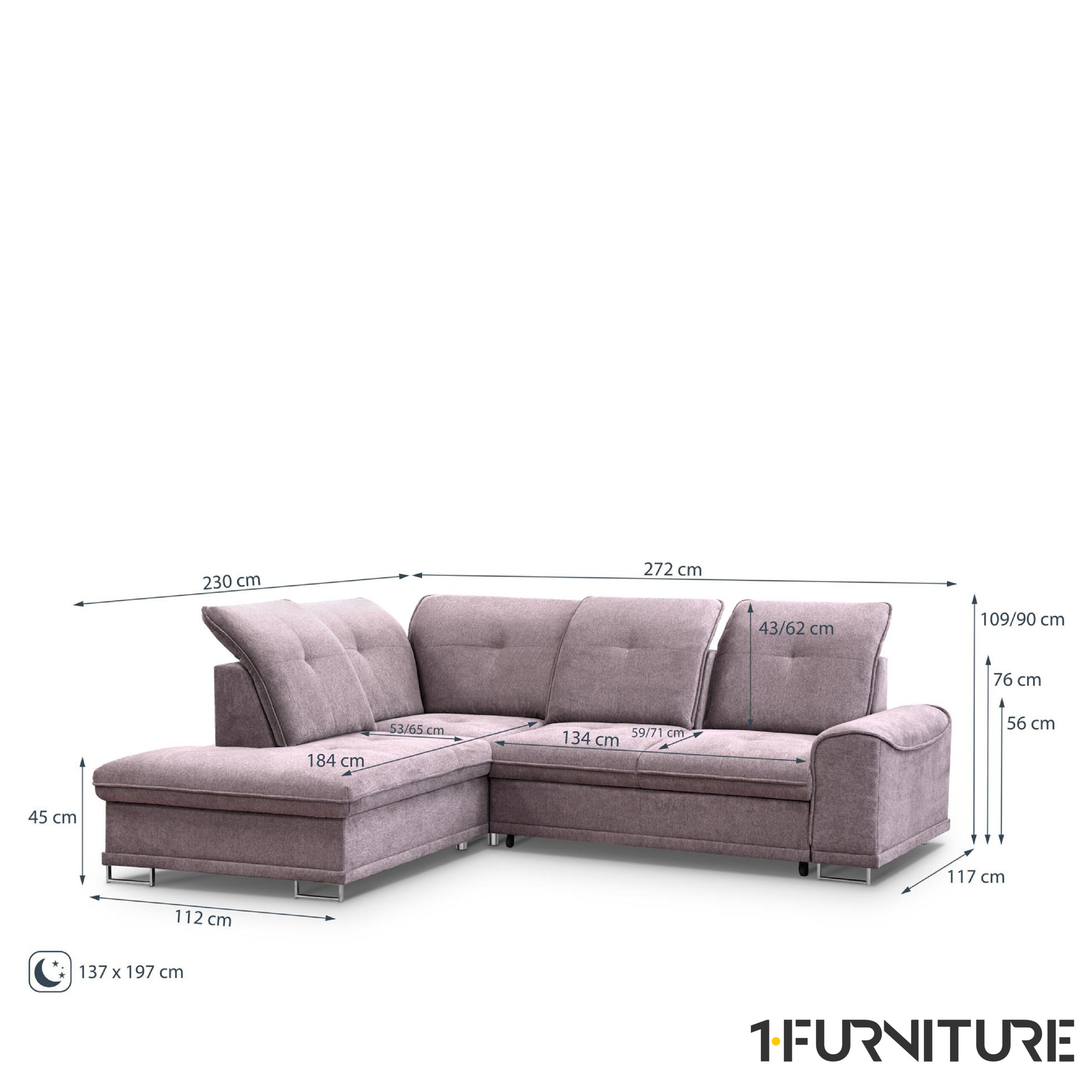 Kogumõõdud: 272 × 232 × 92/108 cm