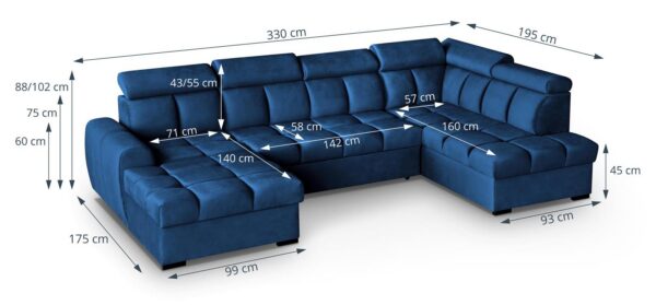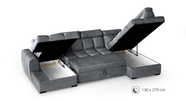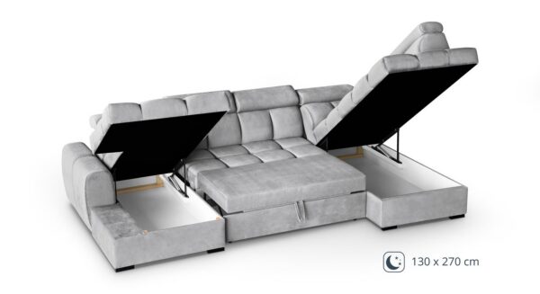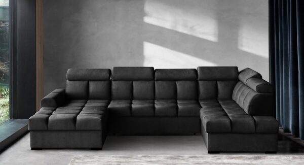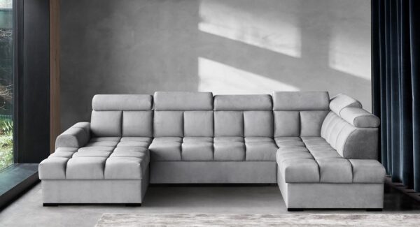 Gomez U on suur ja stiilne U-kujuline nurgadiivanvoodi, mis ühendab tänapäevase disaini, praktilise funktsionaalsuse ja maksimaalse mugavuse. See on ideaalne lahendus avaratesse elutubadesse, kus hinnatakse nii esteetikat kui ka kasutusmugavust.