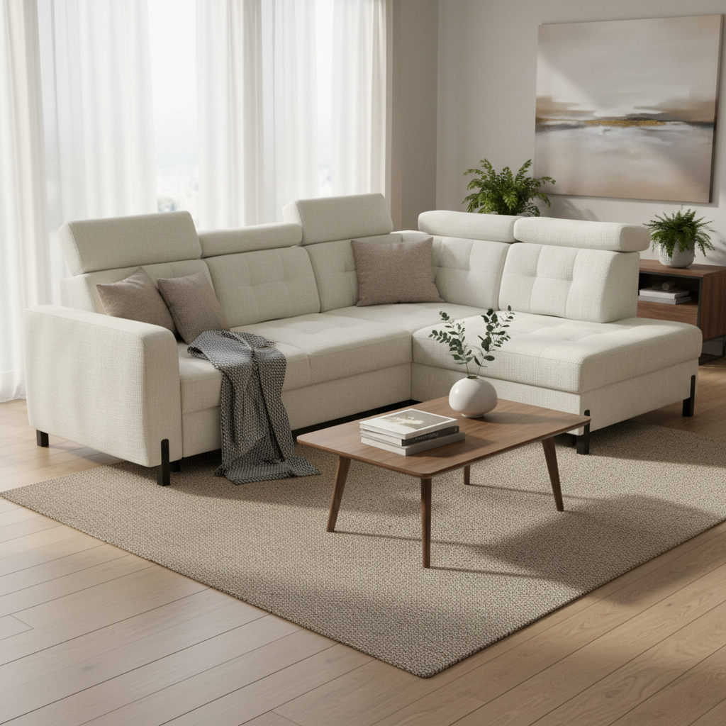 • Diivan on varustatud lihtsalt kasutatava lahtikäimismehhanismiga, mis võimaldab kiiresti muuta nurgadiivani avaraks magamispinnaks.