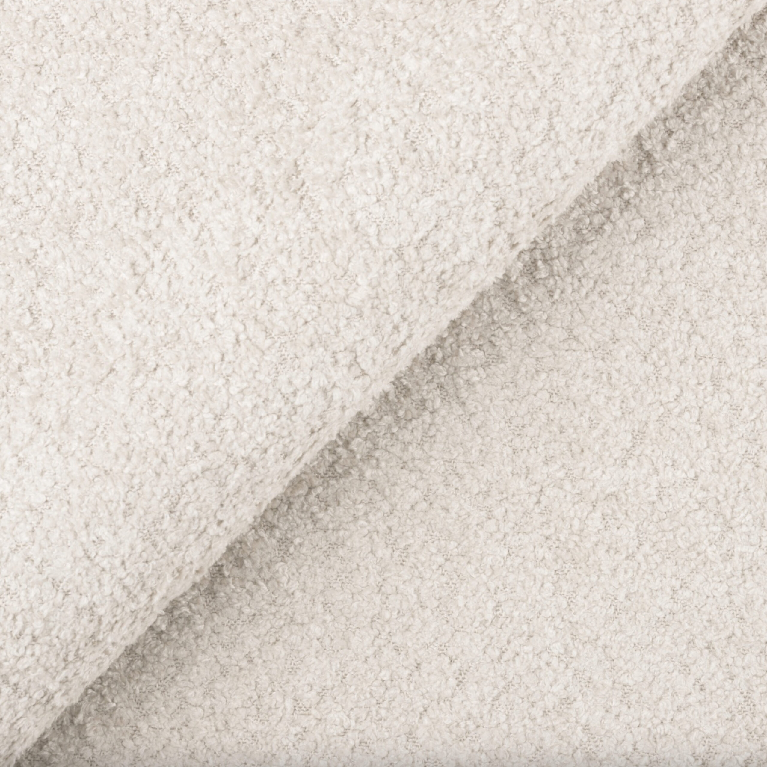 Stiilne disain – bouclé-kangas ja pehme, kumer peats loovad luksusliku ilme.